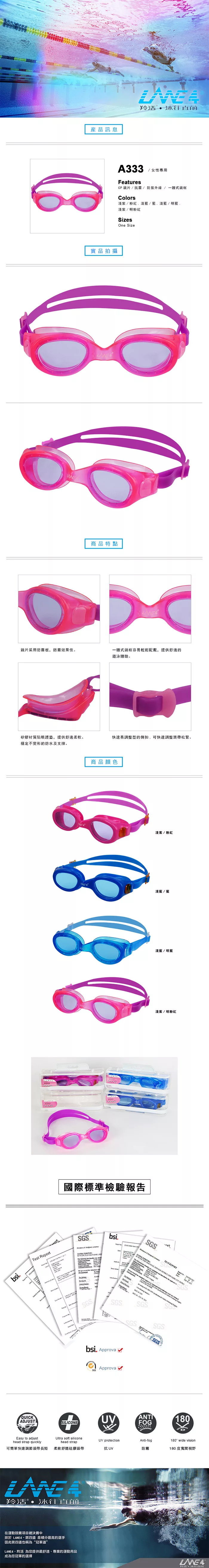 LANE4羚活女性專用抗UV舒適泳鏡 A333
